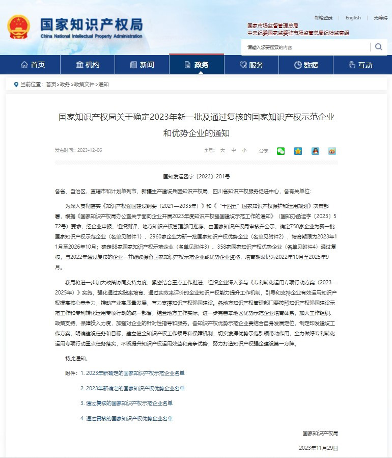 近日,知识产权局发布了《知识产权局关于确定2023年新一批及通过复核的知识产权示范企业和优势企业的通知》,圣阳股份获评“知识产权优势企业”,这是自圣阳股份荣膺企业技术中心CNAS实验室博士后科研工作站及“绿色工厂”等荣誉后又一张企业名片